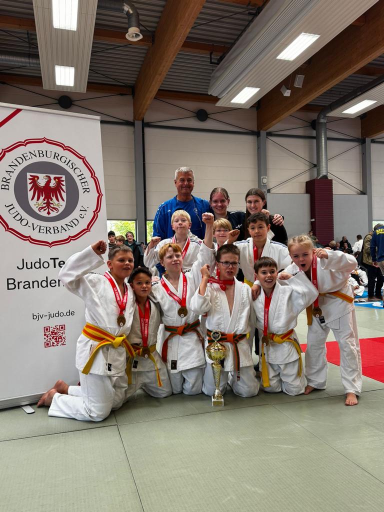 Am Sonntag gehen die Wettkämpfe in Lauchhammer weiter. Zunächst beginnen unsere u11er bei den Landesmannschaftsmeisterschaften. Wir treten zusammen mit dem PSV Frankfurt (Oder) in einer Kampfgemeinschaft an. Mit einem 5:1 Erfolg gegen Königswusterhausen, 4:2 gegen Oranienburg und im Finale 5:1 gegen den UJKC Potsdam erkämpfen sich unsere Jungs souverän den Landesmannschaftsmeistertitel.