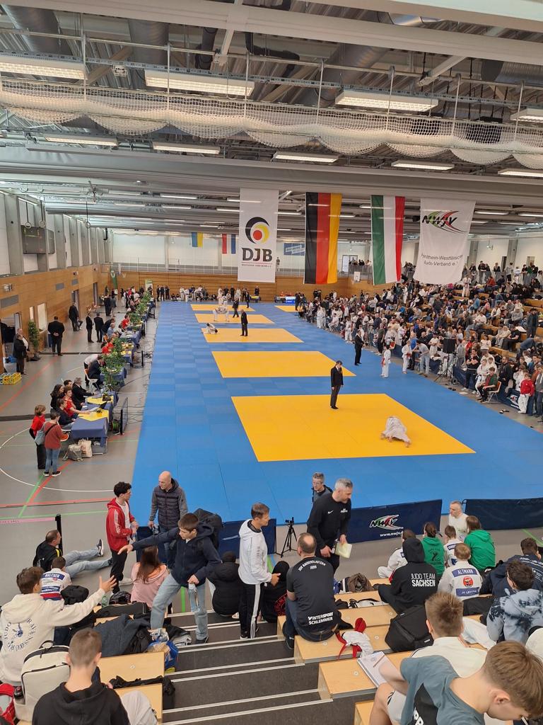 Zum ersten Mal seit 2019 nehmen wir wieder beim DJB-Sichtungsturnier in Duisburg teil. Mit Platon haben wir nur einen Starter, der sich gegen die starke Konkurrenz durchsetzen möchte. Trotz Altersunterschiede, da das Sichtungsturnier in der Altersklasse u16 stattfindet, kann Platon seine ersten beiden Kämpfe mit Ippon für sich entscheiden. Danach muss er sich knapp mit Yuko geschlagen geben und auch im vierten Kampf reicht es leider nicht für einen Sieg.
