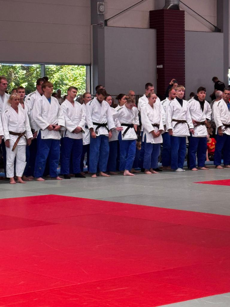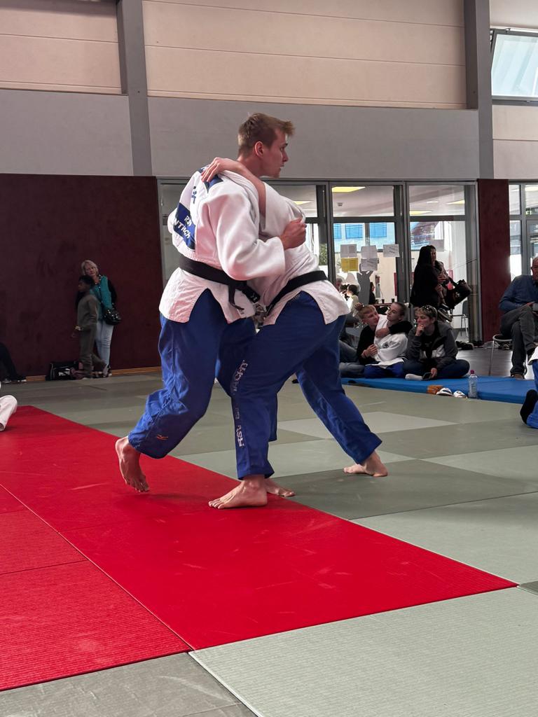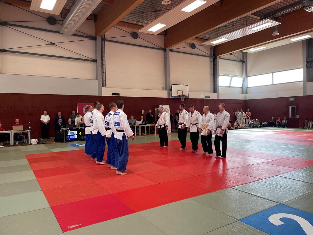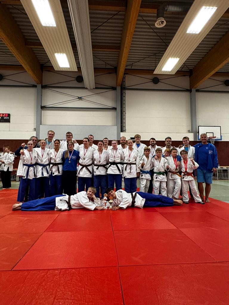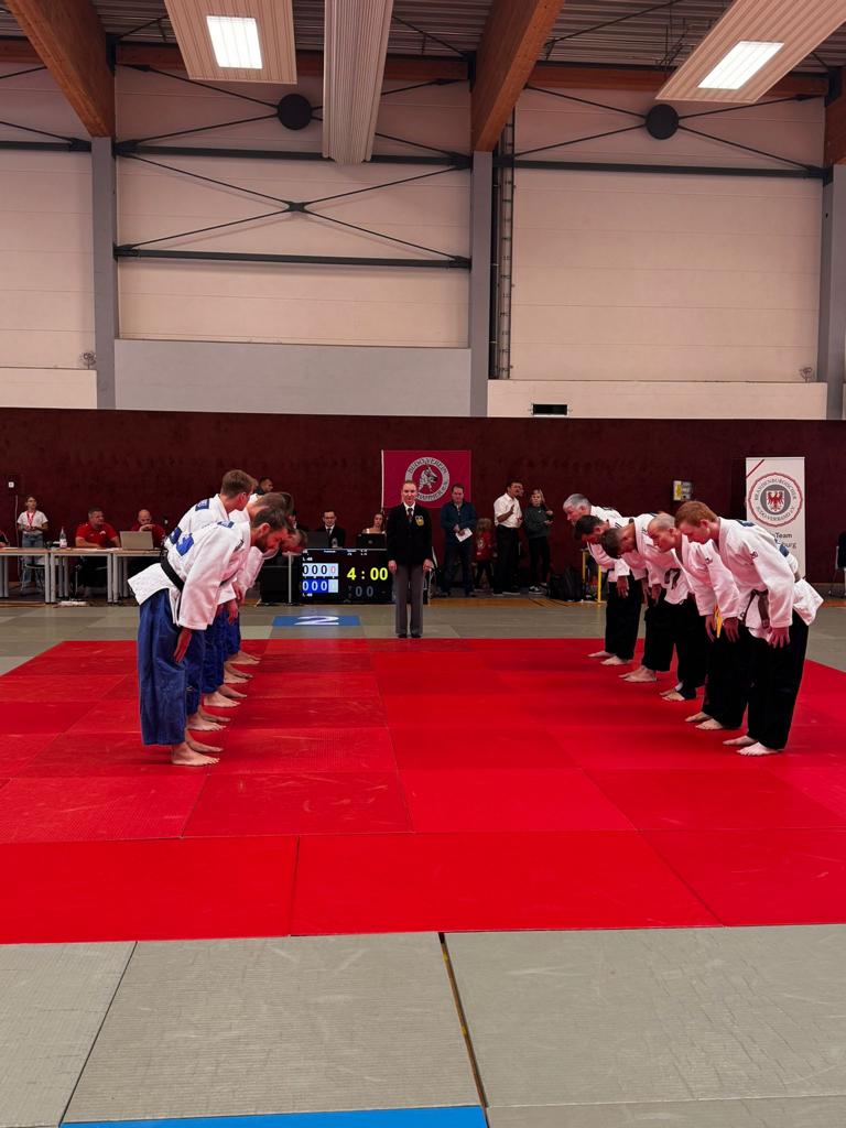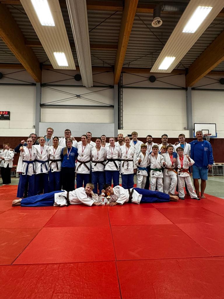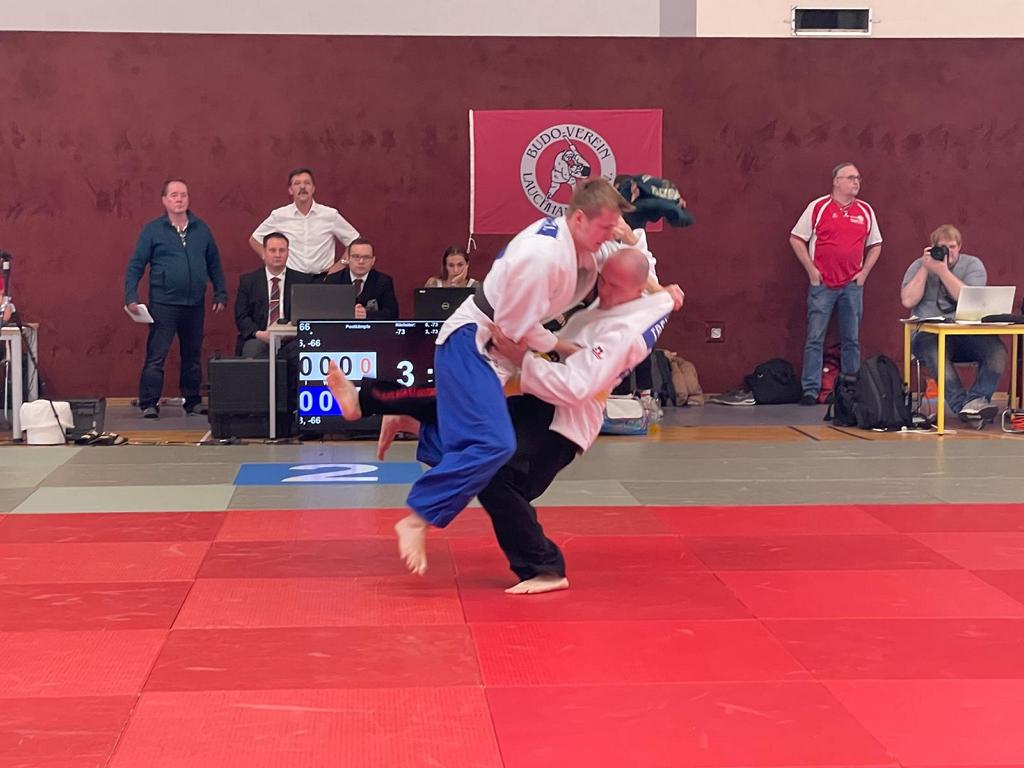 Anton bringt uns mit einem schönen Harai-Goshi und seinen letzten Reserven 1:0 in Führung. Die Halle ist mittlerweile am Toben, unsere u11er, u13er, die Mädels und alle mitgereisten Fans feuern unsere Kämpfer auf der Matte an. Leon, der nach jahrelanger Judopause wieder antritt, muss sich gegen den starken Spremberger geschlagen geben. Max, der die wichtige Aufgabe hat Ninus zu ersetzen, holt für uns den nächsten und so wichtigen Punkt mit einen schönen Ko-Uchi-Gari. Damit gehen wir 2:1 in Führung und es läuft auf einen allesentscheidenden letzten Kampf zu. Eric, bis zu diesem Zeitpunkt ungeschlagen, unter anderem mit einem Sieg gegen Jörg Frischmann aus Babelsberg, muss sich dem ebenfalls starken Spremberger geschlagen geben. Somit steht es 2:2 und der letzte Kampf -90kg entscheidet über den Titel. Oskar geht mit Waza-Ari in Rückstand, kann aber direkt im Anschluss seinen Gegner im Boden abwürgen. Mehr Spannung geht nicht. Alle Fans und Kämpfer am Mattenrand stehen Kopf, da jetzt feststeht: Wir gewinnen zum dritten Mal in Folge den Landesligatitel bei den Männern! So ein knappes Finale gab es bisher noch nicht, bei dem die Entscheidung im allerletzten Kampf des Tages fällt. Trotzdem müssen wir noch einmal bangen, da die Unterpunkte vielleicht zugunsten der Spremberger ausfallen könnten. Als dann bei der Siegerehrung das Endergebnis verkündet wird brechen alle Dämme: Wir sind zwar punktgleich mit dem Team Lausitz, da wir aber zwei gewonnene Einzelkämpfe mehr haben, bedeutet das für uns Platz 1 und somit den Titel.