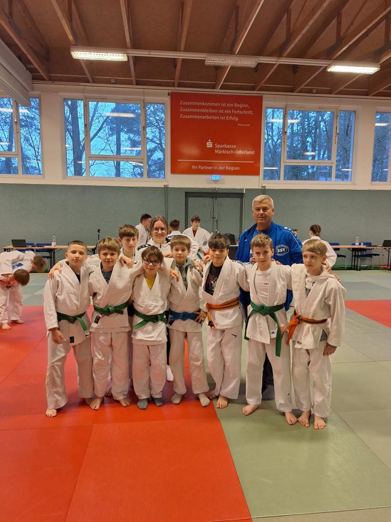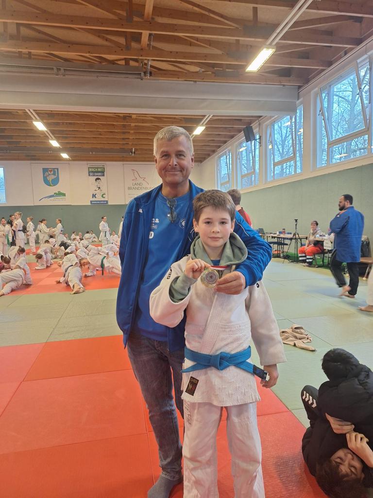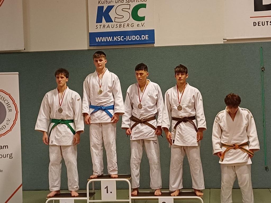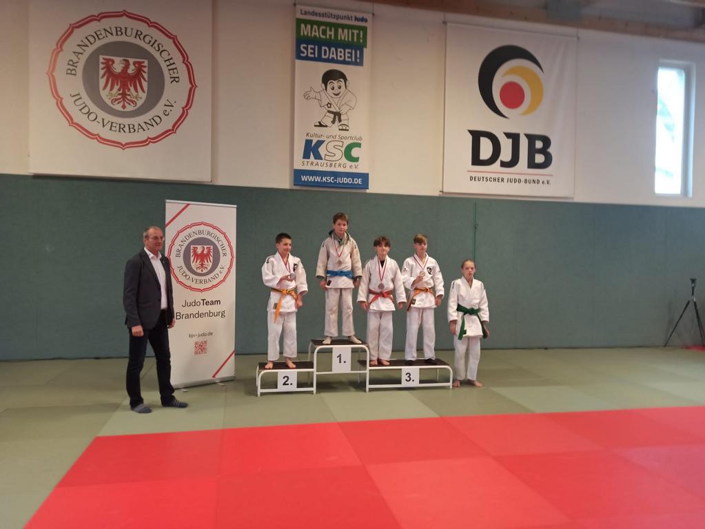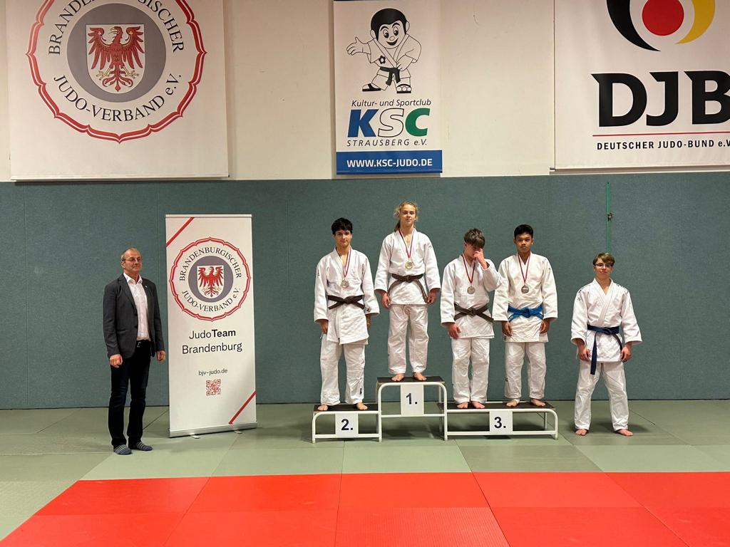 Mit fünf Judokas starten wir zunächst in der u15 bei der Landesmeisterschaft in Strausberg. Die meisten unserer Kämpfer sind noch in der u13 und starten somit eine Altersklasse höher. Arik, Kautzi, Emilian und Phillipp müssen sich der starken Konkurrenz beugen und können sich leider keine Medaille erkämpfen.