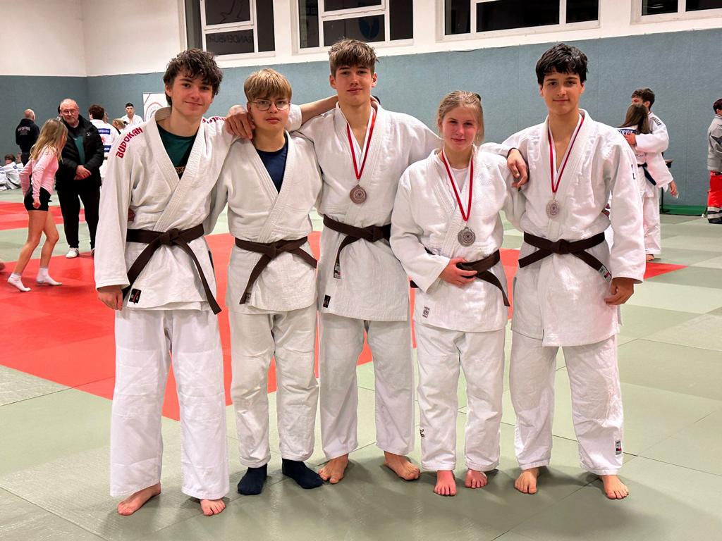 Im Anschluss kämpfen unsere u18er. Lilli kämpft nach langer Verletzungspause wieder bei einer Meisterschaft und kann sich direkt die Silbermedaille sichern. Auch Ben belohnt sich nach drei Siegen mit der Silbermedaille. Bruno holt nach zwei Siegen Bronze. Für Gabriel und Tim reicht es leider nicht ganz für die Qualifikation für die NODEM.